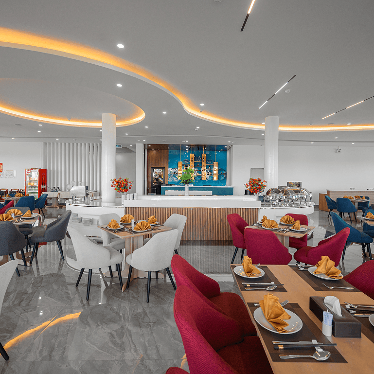Tọa lạc tại vị trí đắc địa hướng biển, The Ocean Restaurant mang đến hành trình khám phá ẩm thực Á - Âu tinh tế trong không gian sang trọng và lãng mạn.